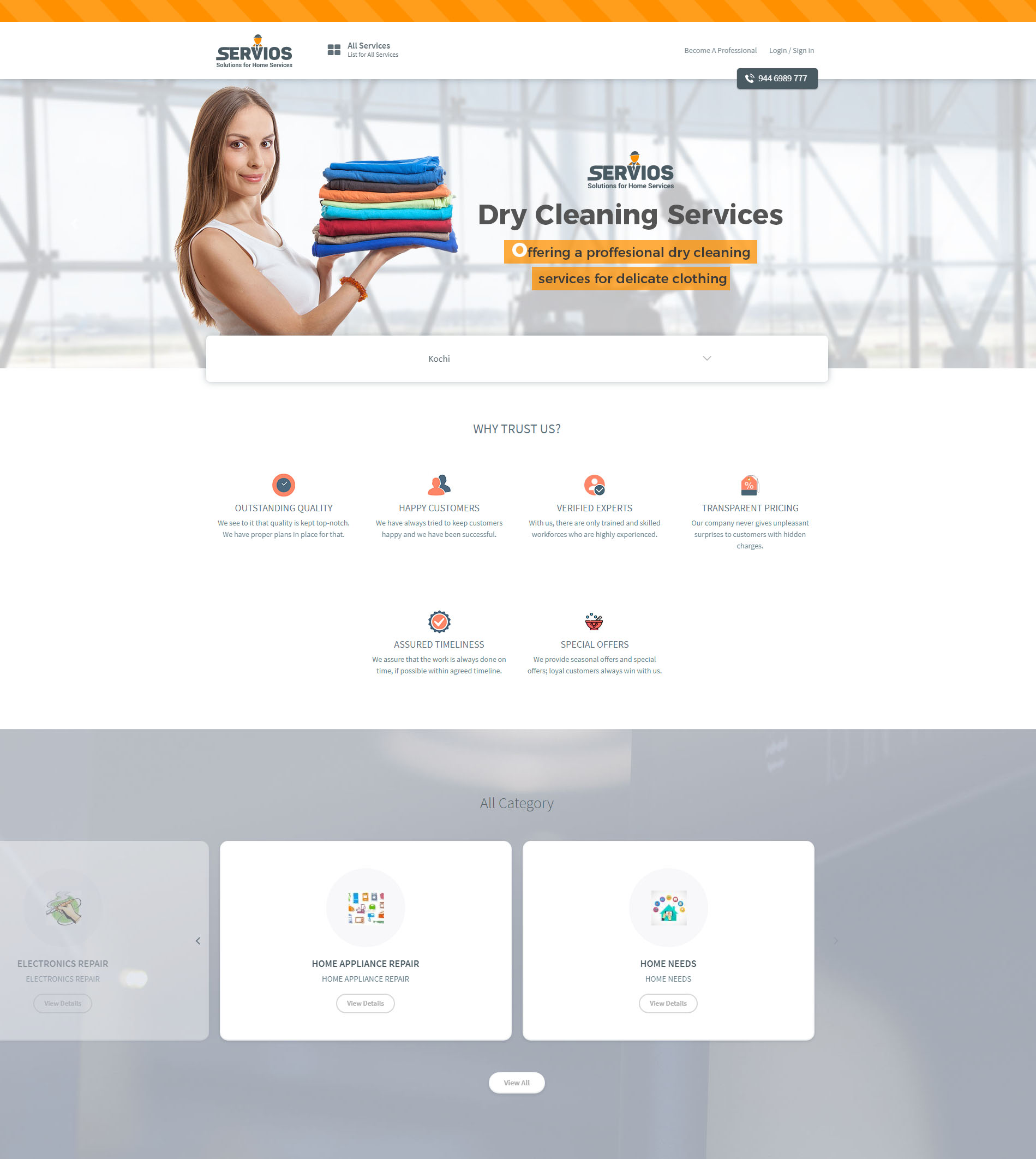 Servios deliver solutions for various areas like dry cleaning, laundry. Our platform links anyone looking for household services with professionals that deliver services as per our guidelines. We provide door to door services. We serve you with good quality service.