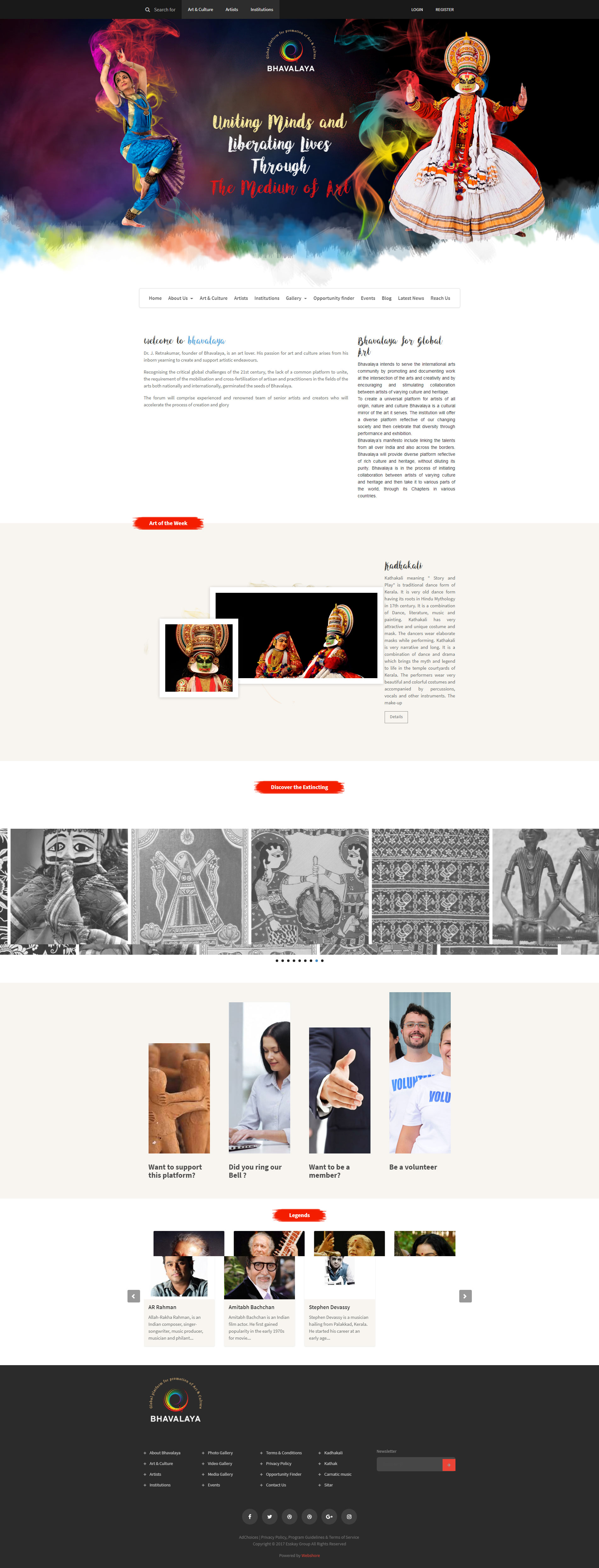 Recognising the critical global challenges of the 21st century, the lack of a common platform to unite, the requirement of the mobilisation and cross-fertilisation of artisan and practitioners in the fields of the arts both nationally and internationally, germinated the seeds of Bhavalaya.