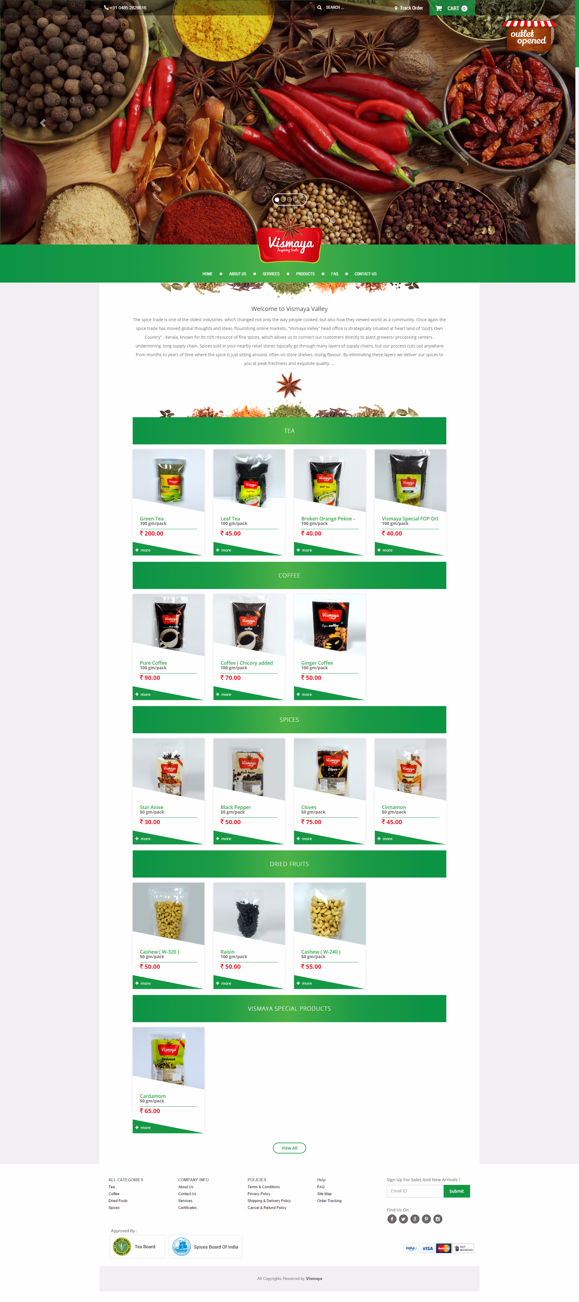 The spice trade is one of the oldest industries, which changed not only the way people cooked, but also how they viewed world as a community. Once again the spice trade has moved global thoughts and ideas, flourishing online markets. “Vismaya Valley” head office is strategically situated at heart land of ‘God’s Own Country” - Kerala, known for its rich resource of fine spices, which allows us to connect our customers directly to plant growers/ processing centers , undermining long supply chain. Spices sold in your nearby retail stores typically go through many layers of supply chains, but our process cuts out anywhere from months to years of time where the spice is just sitting around, often on store shelves, losing flavour. By eliminating these layers we deliver our spices to you at peak freshness and exquisite quality. ...