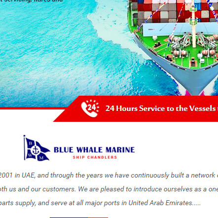 Blue Whale Marine Ship chandlers was established in 2001 in UAE, and through the years we have continuously built a network of strong, close business relations, always keeping in mind, how much this could benefit both us and our customers. We are pleased to introduce ourselves as a one of the leading ship chandlers, ship supply; spare parts supply, and serve at all major ports in United Arab Emirates.